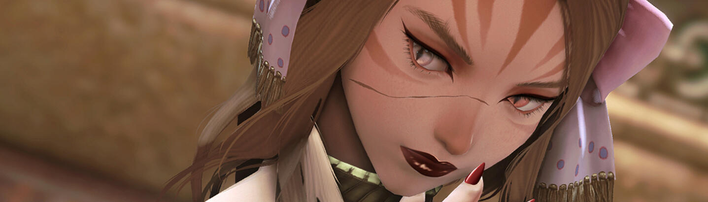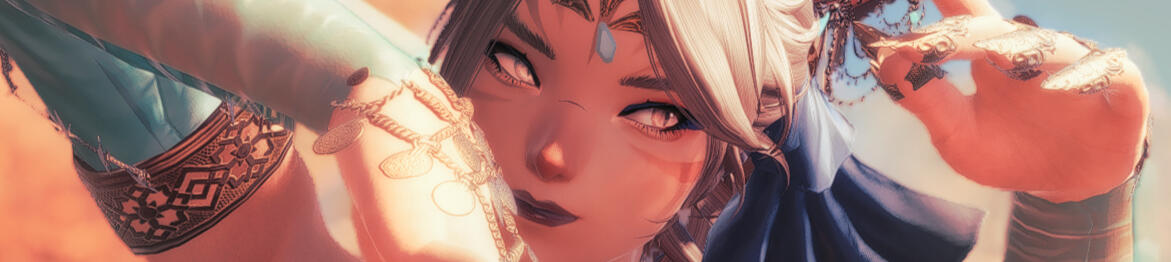 Bold fingers have always strayed from the drawstrings of bows and the grips of swords, favoring instead the call of lute strings and rivers of silken roads. Though a hunter's lineage runs rampant through this Miqo'te's blood, such exotic talents are reserved for the most social of sorts instead; dexterous feet and a balancing tail honed to the art of dance and entertainment of its fans.So too has her voice been molded to meet such court-side interests. What started first as a token hobby to pass the desert days away, soon became a beacon for prospective fame-builders. Many tales of those before her of the most daring spirits have fallen from her lips (and many coins have filled her pockets in due return). She has sung of the woes of lovestruck fools for those of the most sympathetic hearts, too, yet more often, she has sung of the vague semblance of lonely lasses without a place or side to venture to during the coldest of nights—all flourished with batting eyelashes and smiles most persuasive.As naïve as she may appear to be, there seems to be an element of hidden seasoning under the surface. Whether it be the out of place scar that travels from nose to cheek or the pointed steps that dictate the rotation of her hips, there is surely more to her ballads than random selection. Where the line falls between truth and fiction, however, is known only by the aforementioned artist.Between dramatic displays of oversaturated emotions and delightful indulgences, X'aloh Rahz certainly has - and will continue to - make a name for herself.