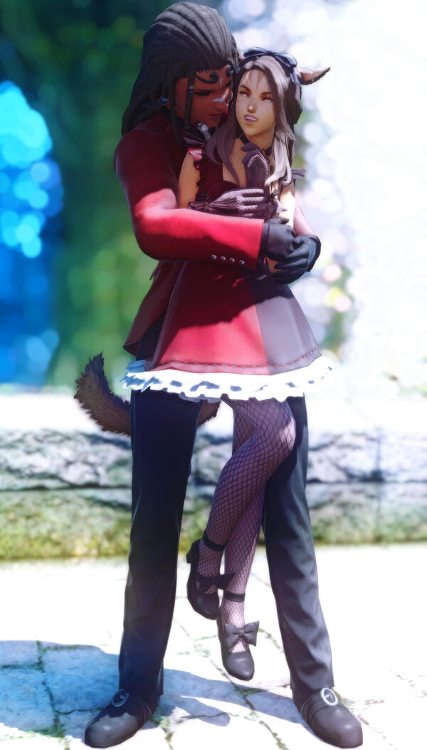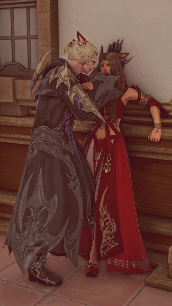 New job opportunities naturally bring about new colleagues, and though little initially seemed to lay between these two, they found a singular spark in time: red magic. With an extension of connections (and selfless Seeker favors, of course), she and Esmond once found themselves as likeminded trainees under Fihpo'ya Rilohtan's tutelage when time permitted.Now that Esmond no longer pursues magic to the same degree, the two understandably spend less time together. Not that that comes to much surprise; she's heard that marriage life tends to do such a thing—what, with happy endings and the like.Despite that and perhaps to a degree of surprise, X'aloh enjoys the hyur's company and the atmosphere he brings. With infectious smiles and an upcoming protagonist's charm, Esmond influences X'aloh still to be optimistic about future adventures, and his dedication to her own magical advancement pushes her far more than she could ever push herself.