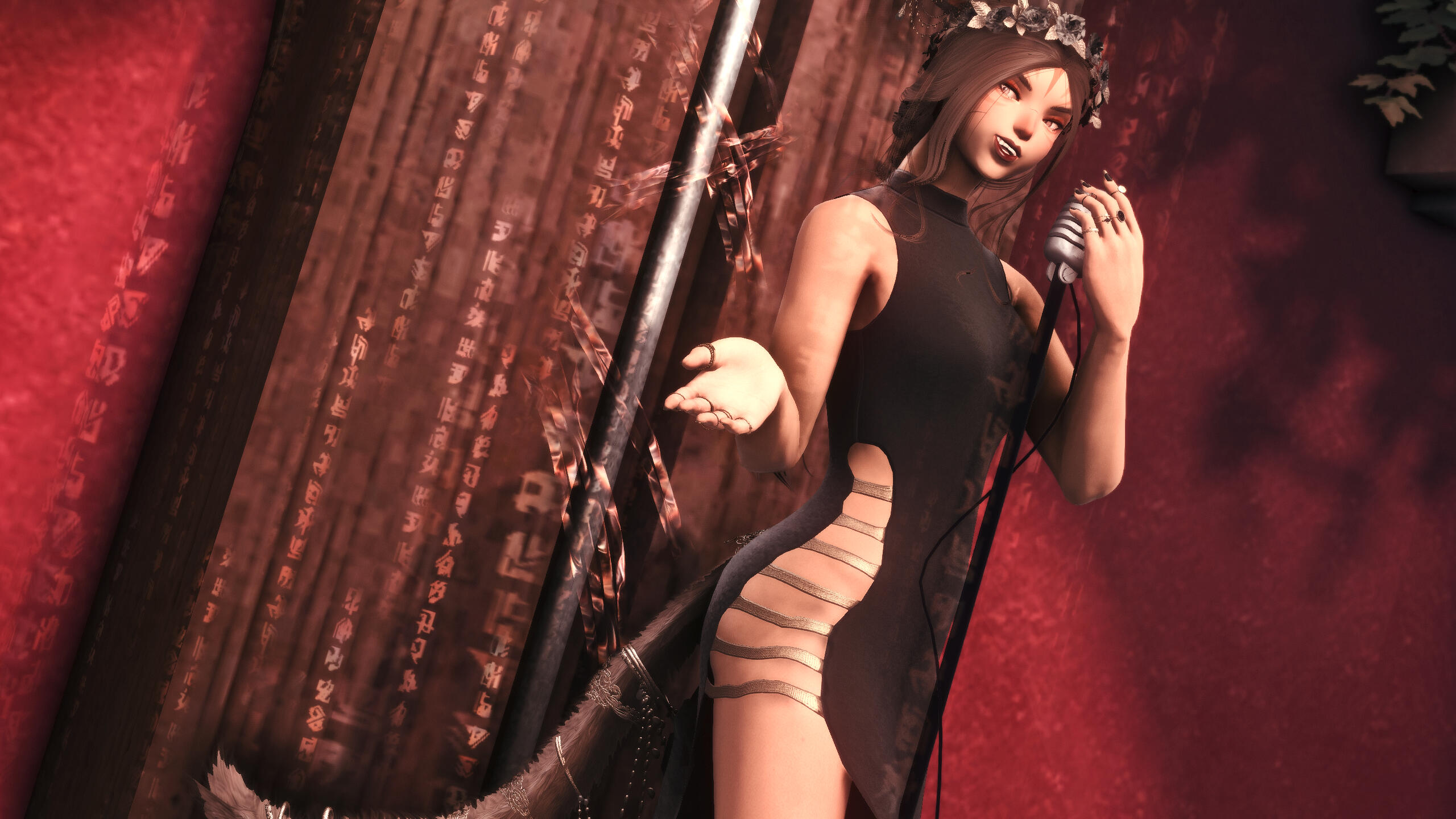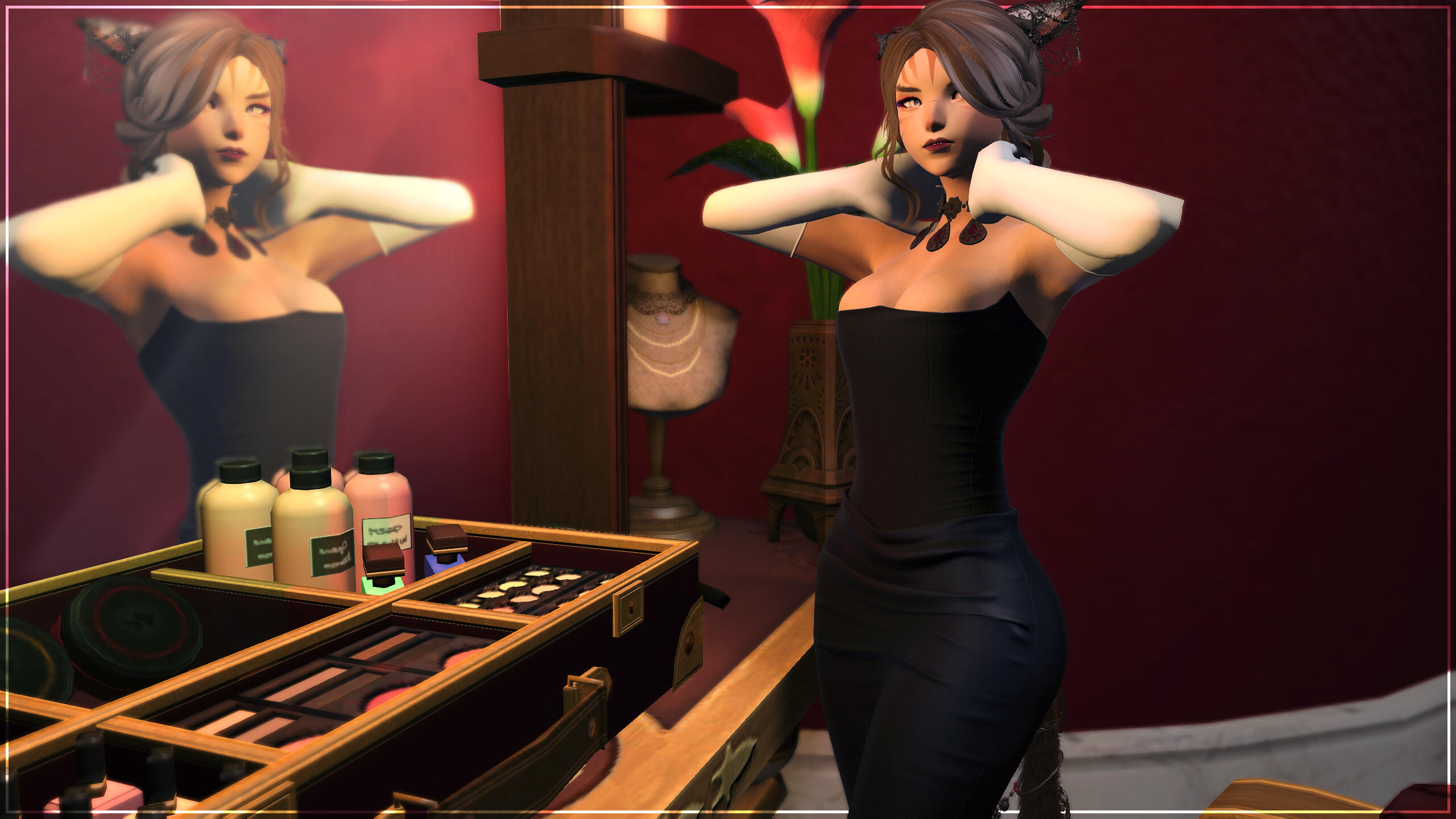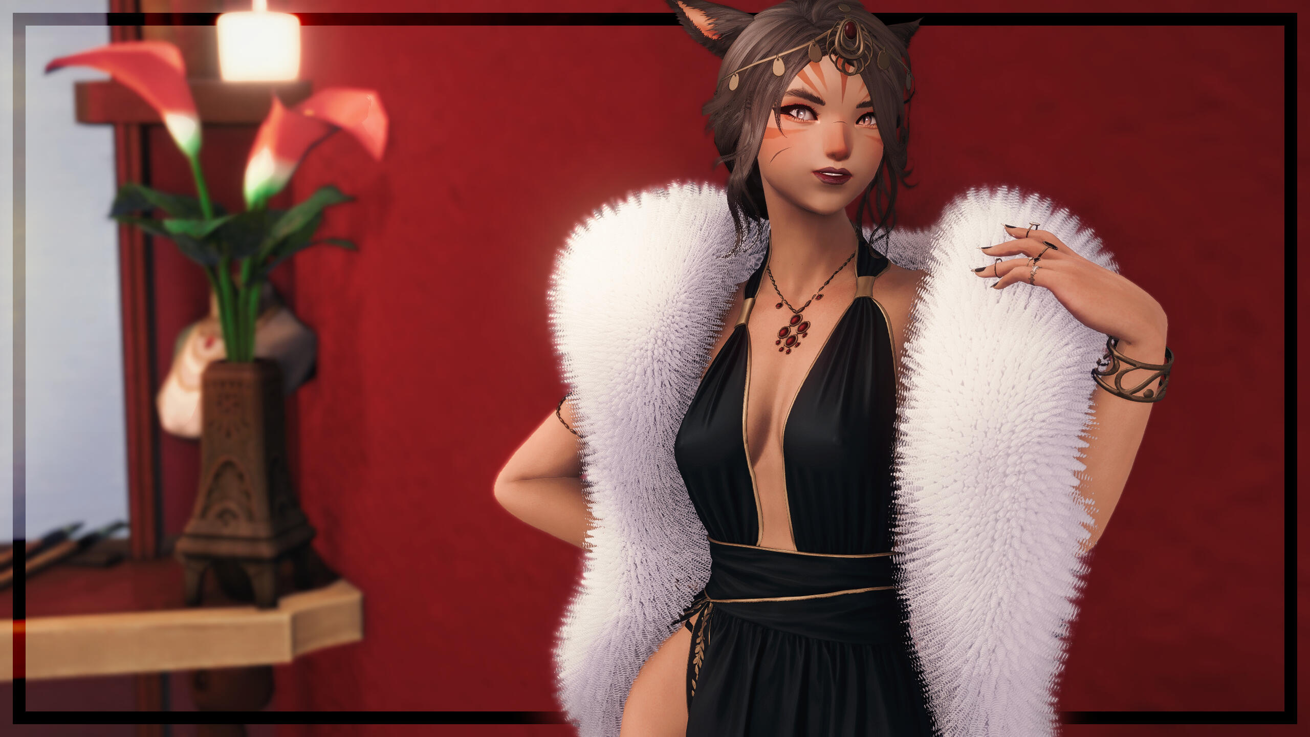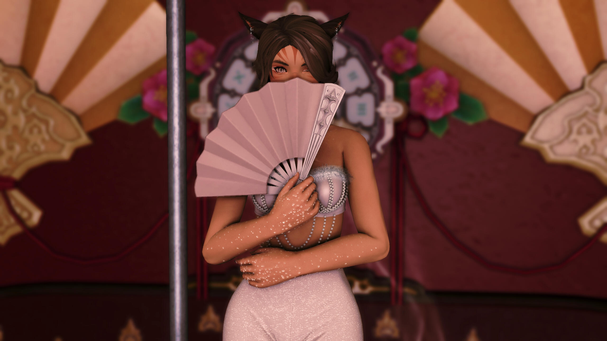 It was not long before the performer began to humor other ventures, too, to occupy the time between one stage from the next. While never a full-fledged adventure, she "selflessly" extended her gifts to various parties. Favored patrons and fickle friends proved useful in this endeavor, and though she never stayed for long, her network grew healthy and fat. Connections became endless. More and more, her name was spoken in and out of the city; the miqo'te recognized simply now for her smiling face and shapely figure. She no longer needed to belt her voice to turn heads.