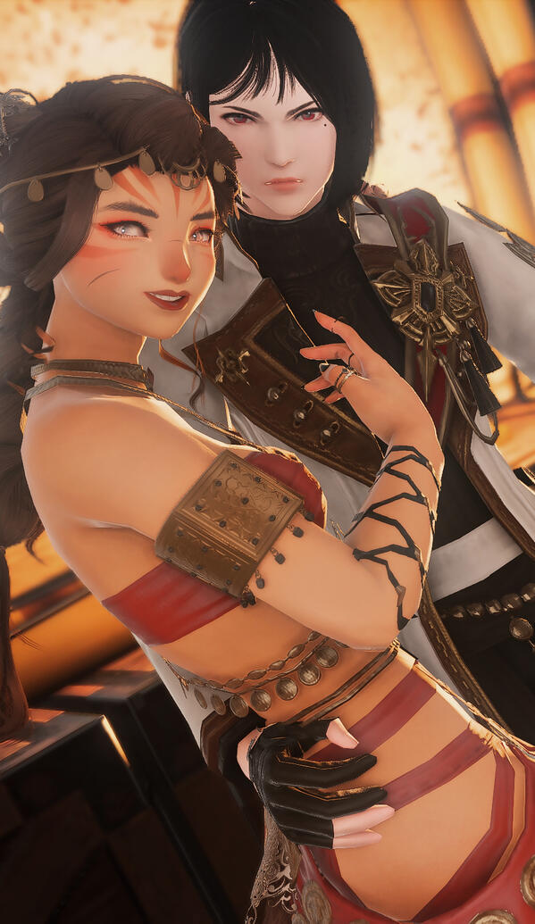 A Highlander that has, by Fate's design, found herself tasked with overlooking and ensuring X'aloh's safety. It started as something casual and mutual: a passing opportunity from one new arrival to another; a spare coin passed between hardworking fingers; half a loaf of bread shared in understanding silence; a sense of trust built upon the struggle of survival and the desire of companionship in a new, foreign empire.While their official "contract" in days of late is technically business centered, the two have long since been far more friendly with one another, acting more akin to siblings than associates. There is nothing they will not do for one another—no height they will not climb. Blood is proven to be thicker than water but they are a miracle shaped by the values of the desert.Try as one might like, they're attached to the hip (even if one towers far above the other) and simply inseparable!