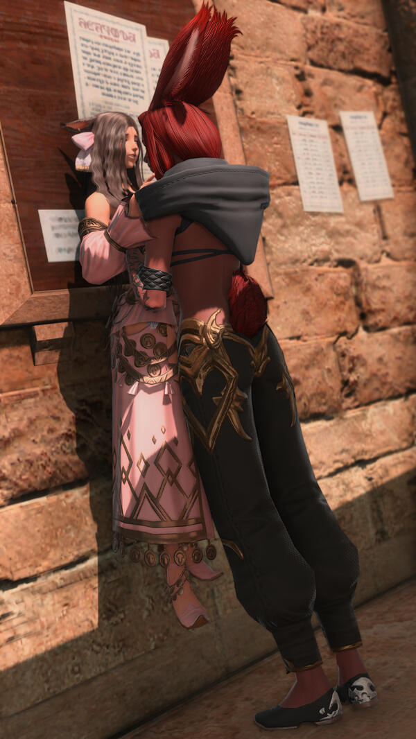 Repeated customers hold their own charm in comparison to fresh entrepreneurs, especially for those that grow loose in their gil payments with each session. There's a saying in business, she thinks, that acknowledges something similar: of how it is more expensive to acquire new customers rather than keeping existing one. She's no businesswoman but the sentiment behind such wisdom is not lost on her, and much time and many smiles have been paid to keep this Rava happy.It is not so one-sided, thankfully. X'aloh enjoys the loyalty and the consistency of her time spent with Ansa. She thrives on it (a secret not so well hidden) and the routine of her docking schedule has done her mentally well over the years.While their personal lives are not so intertwined and there is much that she does not know, there have never been complaints passed between them—before and after exchanges of gil are made.